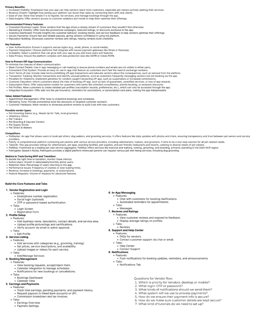 Defined the launch process for an initial Alpha environment, targeting a closed group of 50 vendors and 250 pet parents. This ensures real-world feature validation and workflow optimization before scaling.